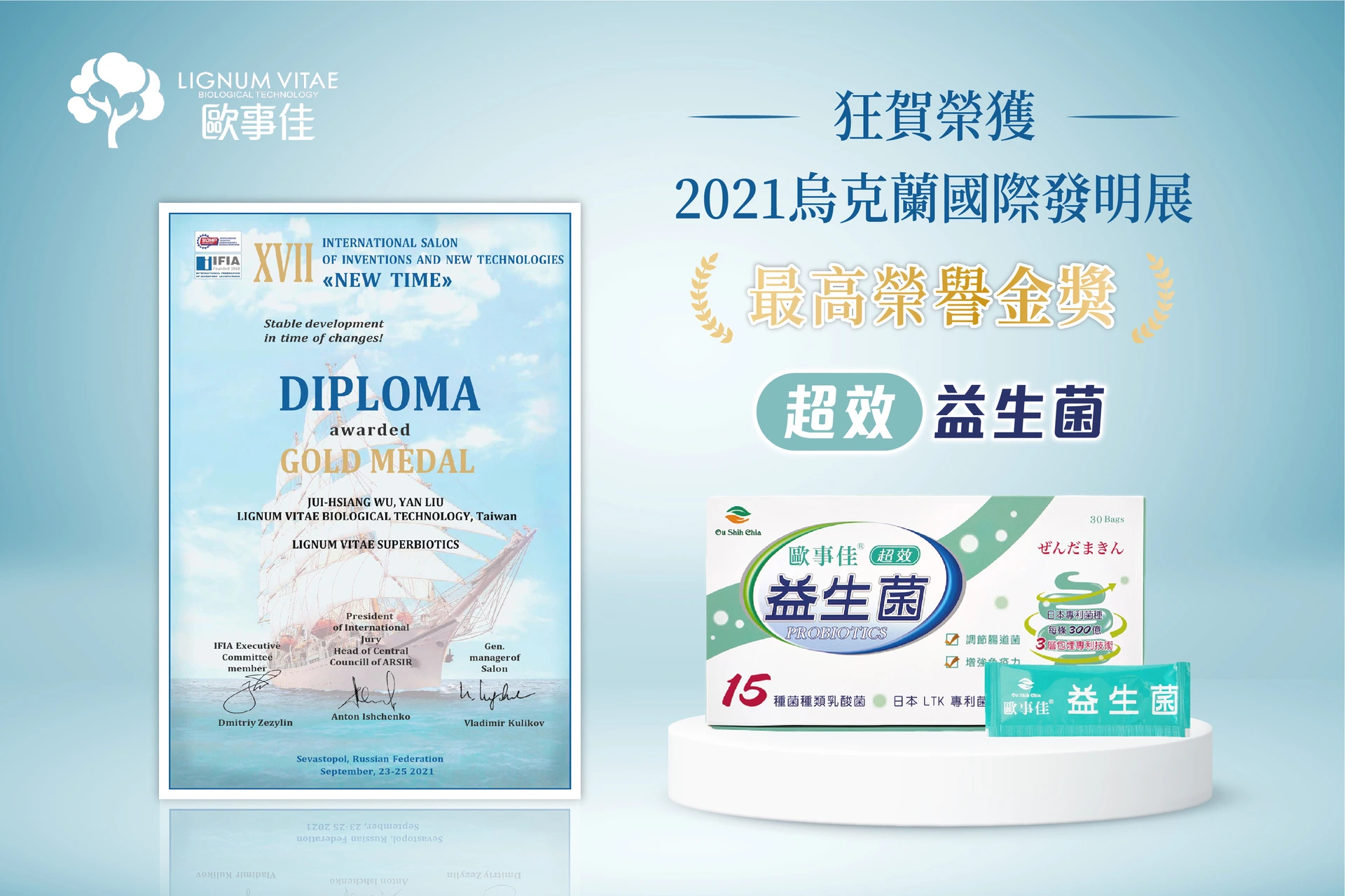 歐事佳團隊專注研發代工數十年,多年前並開始針對益生菌產品進行研發,去年新冠疫情的爆發,帶動全球免疫經濟的崛起,使得其公司益生菌產品市場火熱,不僅台灣,外銷市場更是亮眼。這次烏克蘭發明展,歐事佳以提升孢子化菌類產孢率之弱電裝置和提升發酵產物之混合裝置,以及天然物凍晶包埋結構等獲得金獎肯定。