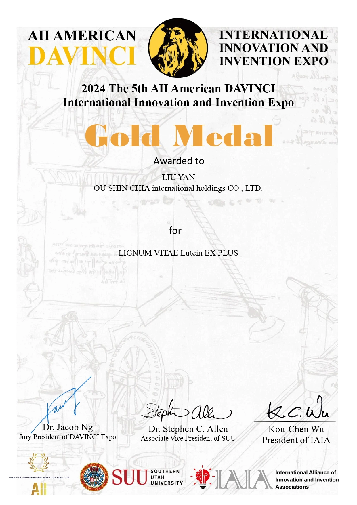 歐事佳國際控股集團研發的歐視佳葉黃素產品,於2024年初次參加由美國南猶他大學SUU及全美創新發明學會AII共同主辦的達文西國際發明展,一舉奪得金獎。這個發明展是全球重要的創新發明交流平台,今年吸引了來自14個國家、超過200件發明作品參賽。歐視佳葉黃素的創新技術在眾多競爭者中脫穎而出,獲得國際評審的高度肯定。現代人長時間暴露在電子設備藍光的環境下,眼睛健康日益受到重視。根據中華民國眼科醫學會2019年的「全民護眼趨勢調查」,台灣人每日使用3C產品的平均時數高達10.7小時。歐視佳葉黃素的核心技術來自於金盞花中萃取的黃金比例10:2的葉黃素和玉米黃素。葉黃素產品在市場上琳瑯滿目,但歐事佳控股集團憑藉創新的研發技術,在全球舞台上獲得金獎,不僅證明了台灣生技產業的強大研發實力,也期望藉此進一步擴展國際市場。